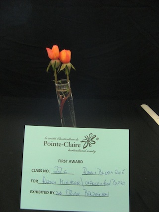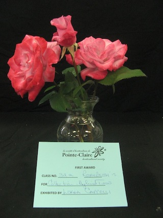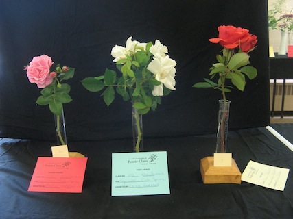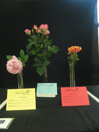 For Agriculture Canada Roses - Spray, first and third prizes to Erika, while Marion won second (leftmost bloom).