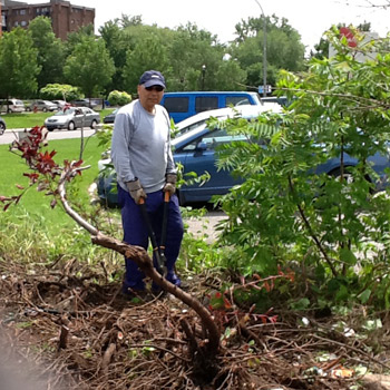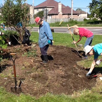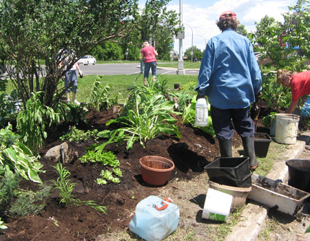 At the corner of Stillview and Hymus, Pointe-Claire, Wanda mobilized the city, and several members to transform an overgrown site.